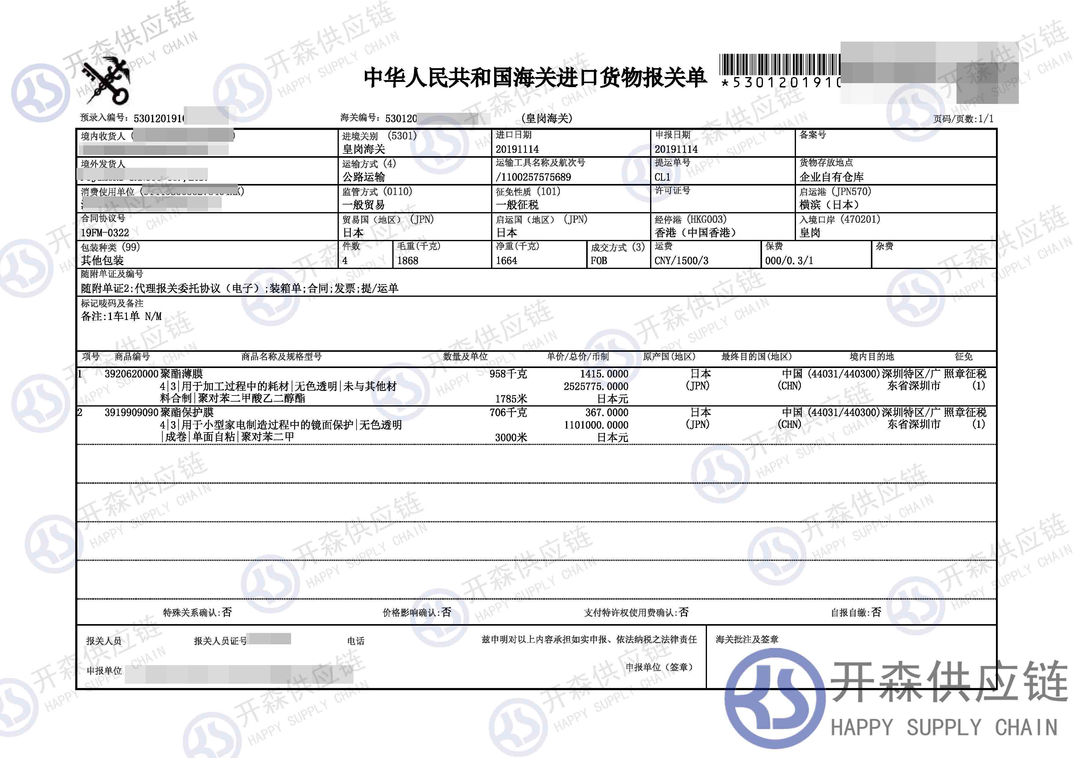 【導讀】您正在閱讀的是關于【進口案例】聚酯薄膜進口報關代理服務的內容,本文由開森化工品進口報關代理小編整理編寫;
