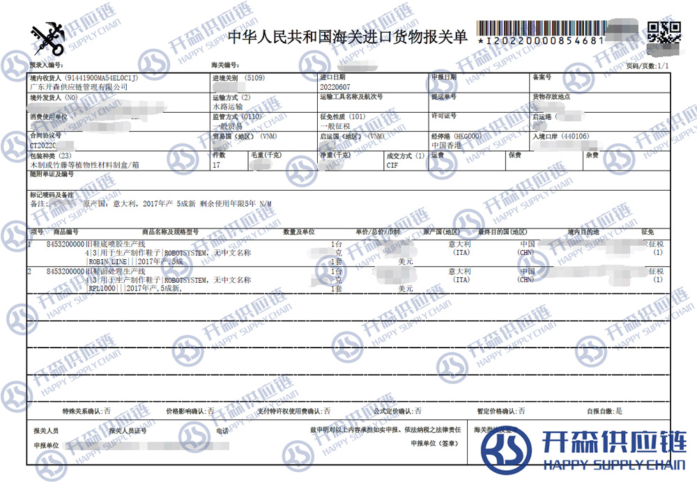 一、二手制鞋生產(chǎn)線設(shè)備進口報關(guān)代理案例詳情