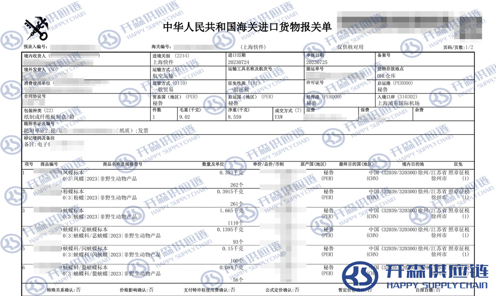 【本文結語】 上述就是上海機場動物標本進口報關代理服務【清關案例】的全部內容,希望能對您有所幫助,如有動物標本進口報關上任何疑問及問題可隨時在線聯(lián)系我們或撥打 18002611553,開森供應鏈擁有豐富的動物標本進口報關操作經驗及案例,10余年進口經驗為您所用,各類進口疑難都能為您一一解答及協(xié)助快速處理解決!